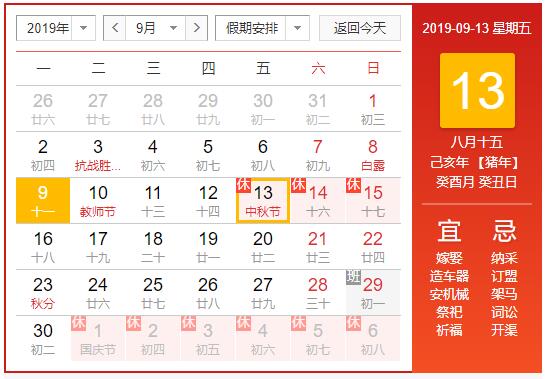 根據國務院辦公廳通知精神,西安凡高網絡科技有限公司現將2019年中秋節放假安排通知如下: