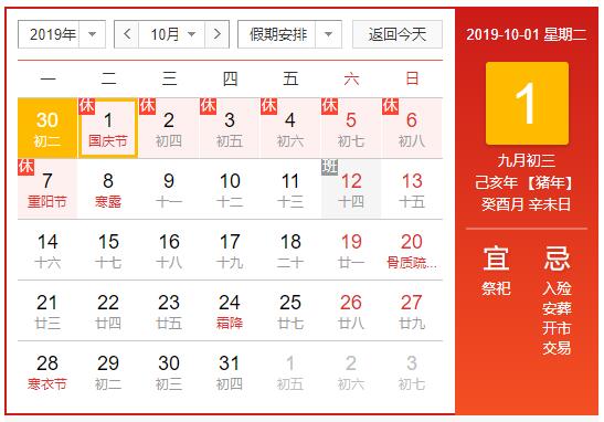 國慶節假期安排為:10月1日至7日(1日,國慶節)放假,共7天。10月7日(星期一)正常上班。